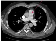 14) Which of the following is typically seen as a radiolucent (dark) area on a chest X-ray?